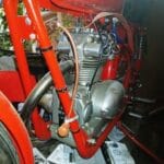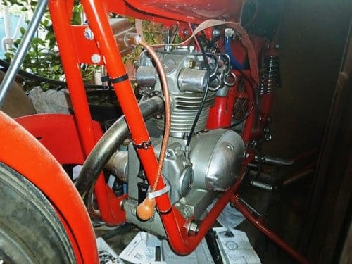 At the heart of the 75 Monoalbero is its celebrated single-cylinder, single overhead cam engine, stamped “Milano – Taranto” and featuring a five-speed gearbox, a configuration extraordinarily sophisticated for a 75cc motorcycle of the period. This example is a matching-number machine, complete with ASI Historic certificate, and is believed to be among the earliest production units. Its engine is in superb running condition, requiring no restoration or mechanical work.