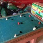 A ‘bumper pool’ game for one or two players, it used metal buttons to que balls and switche between two players. Each player received five balls per player, and holes had fixed scoring, except when the game goes to “double” and “triple” values for certain holes (depending on the ball number.)