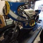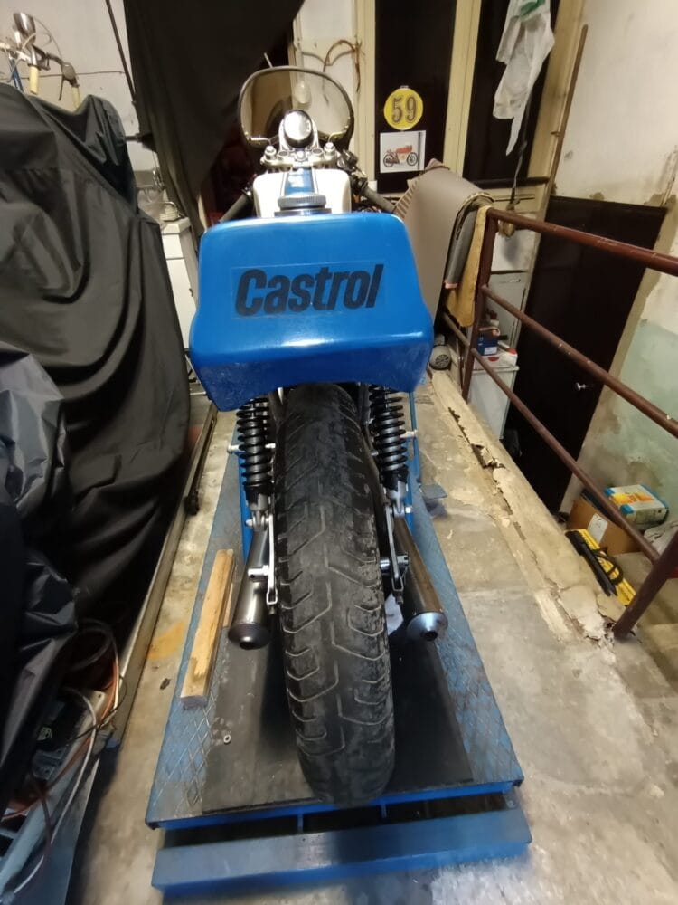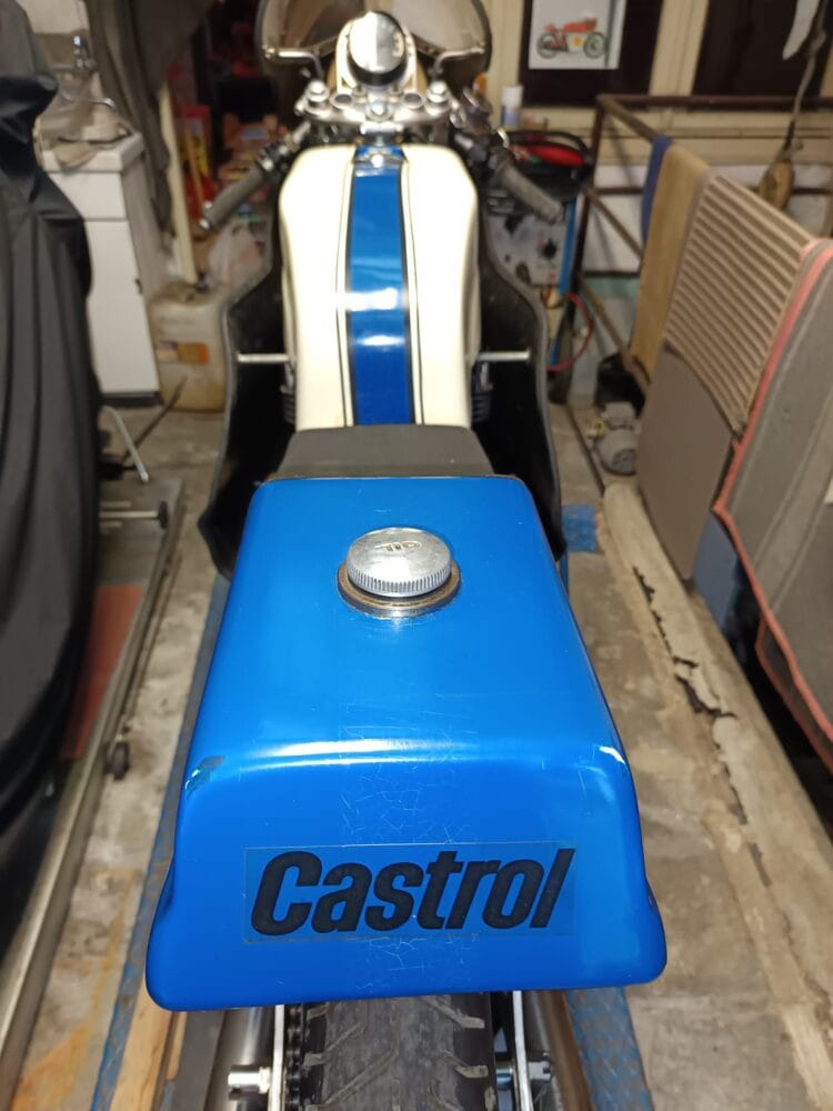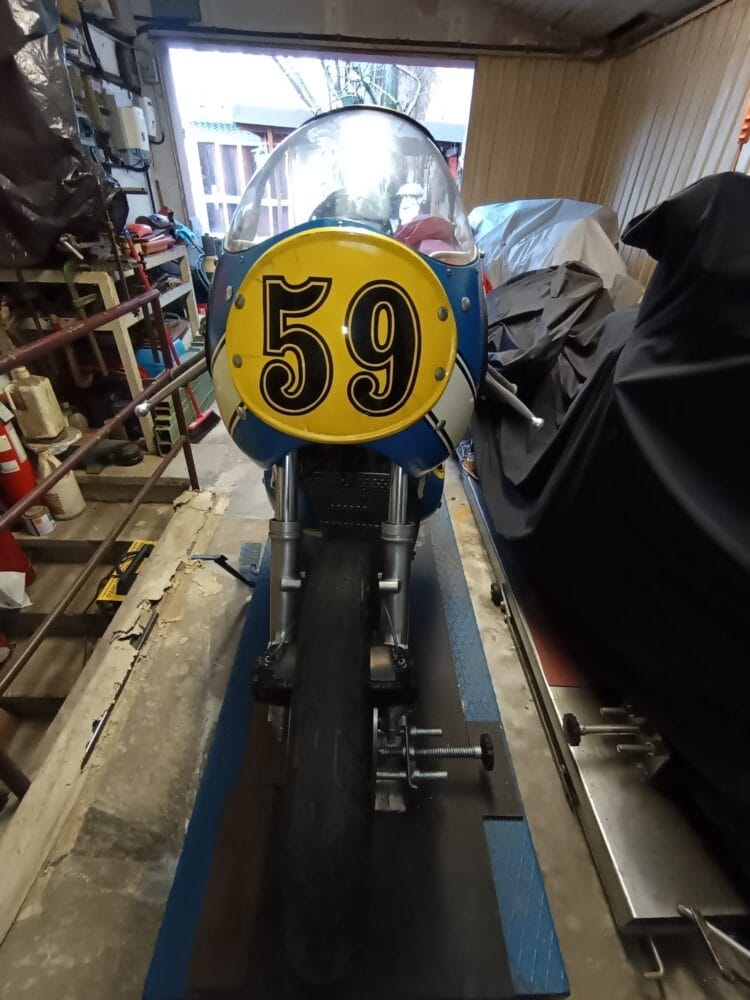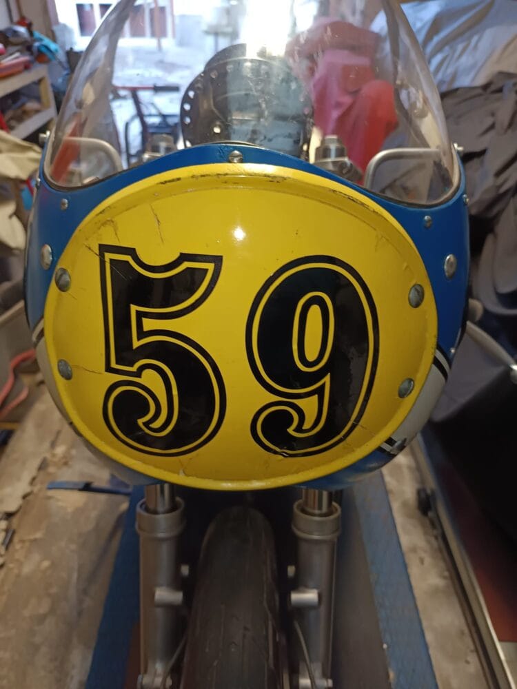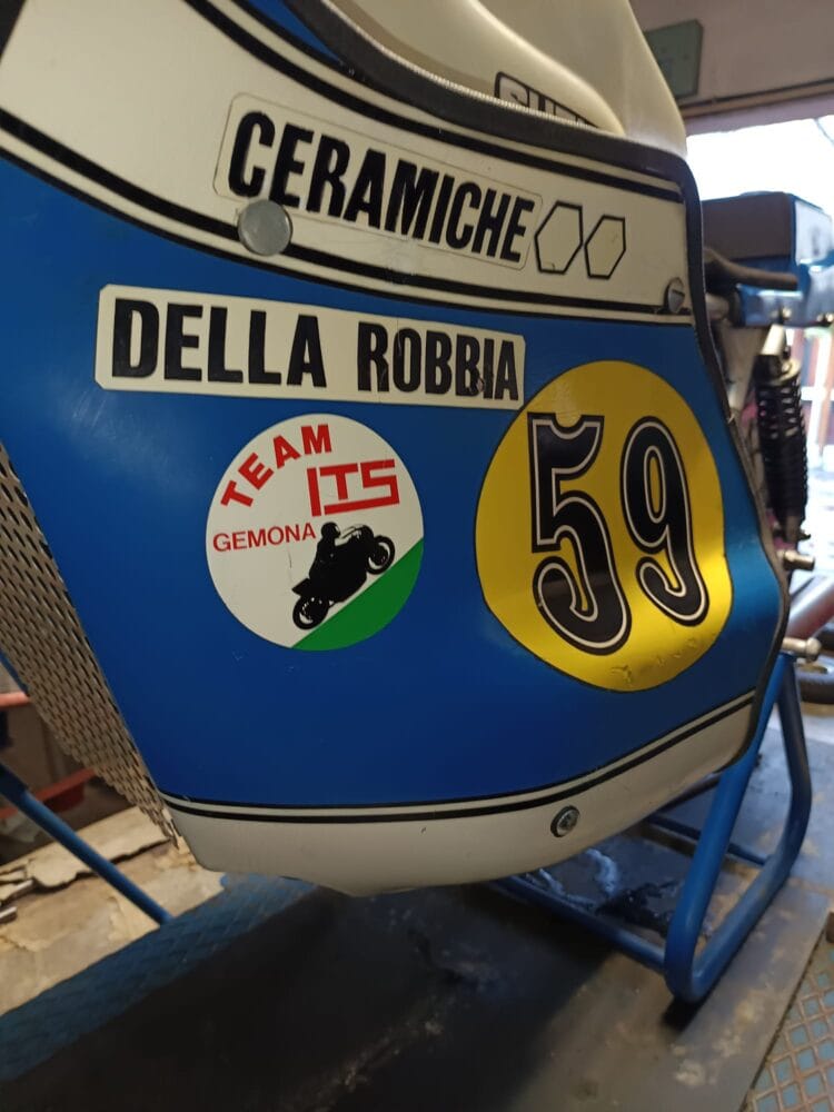 Sponsor markings such as Ceramiche Della Robbia and Team ITS further reinforce the bike’s Italian racing identity and lend it an unmistakable period presence. Importantly, the overall specification, materials, and presentation remain faithful to early 1970s practice, avoiding later anachronisms and preserving the character of a genuine privateer competition motorcycle.