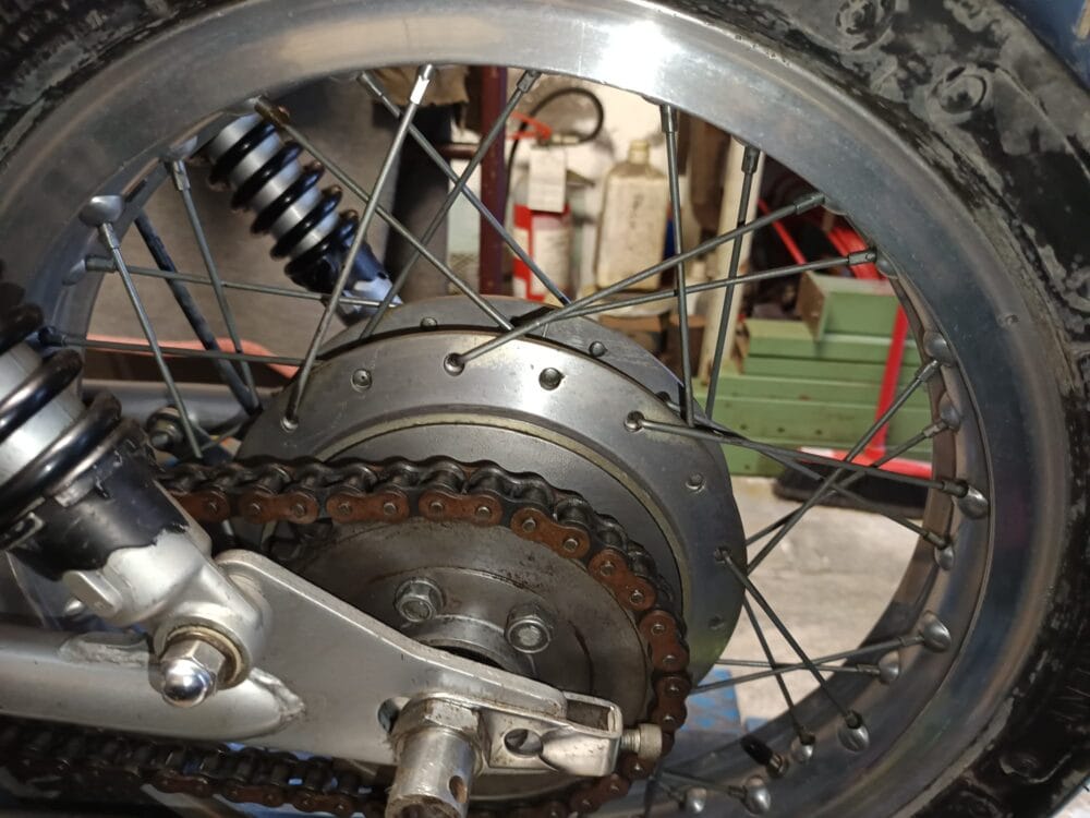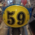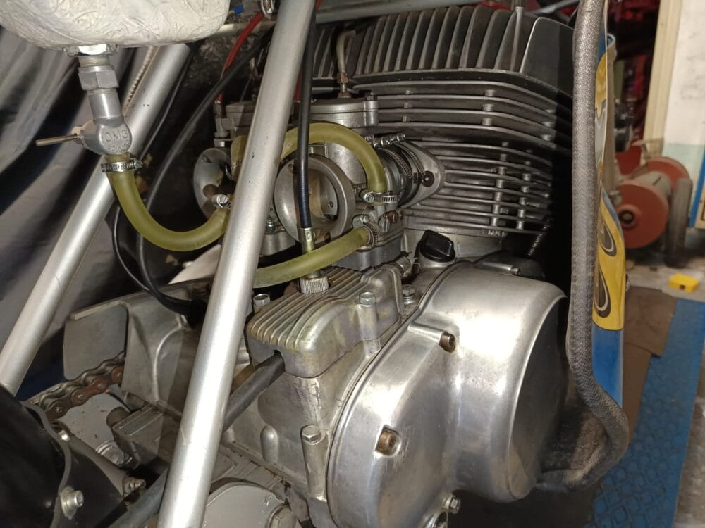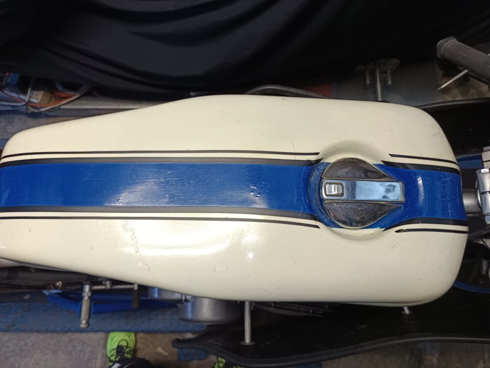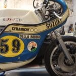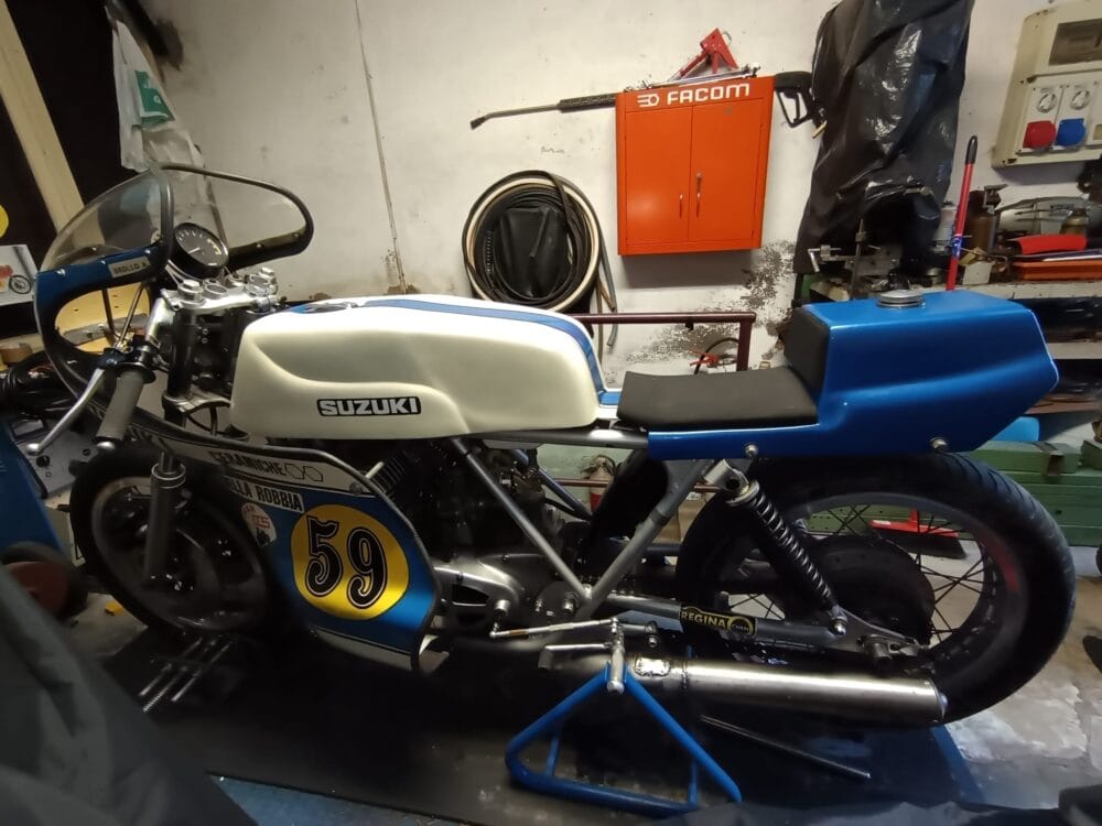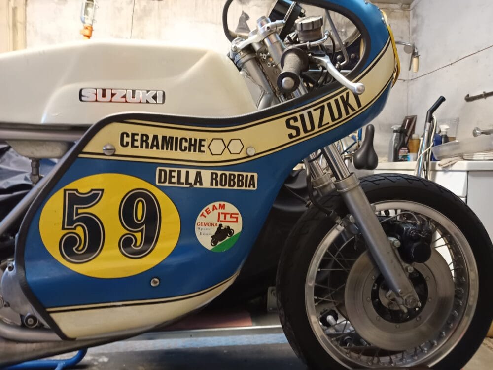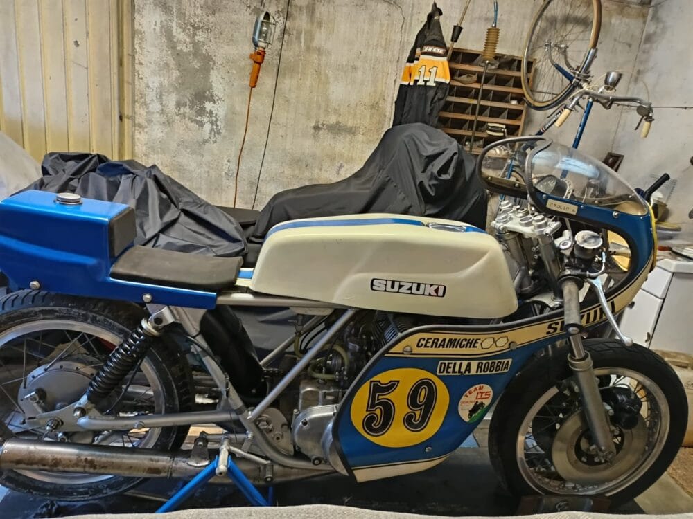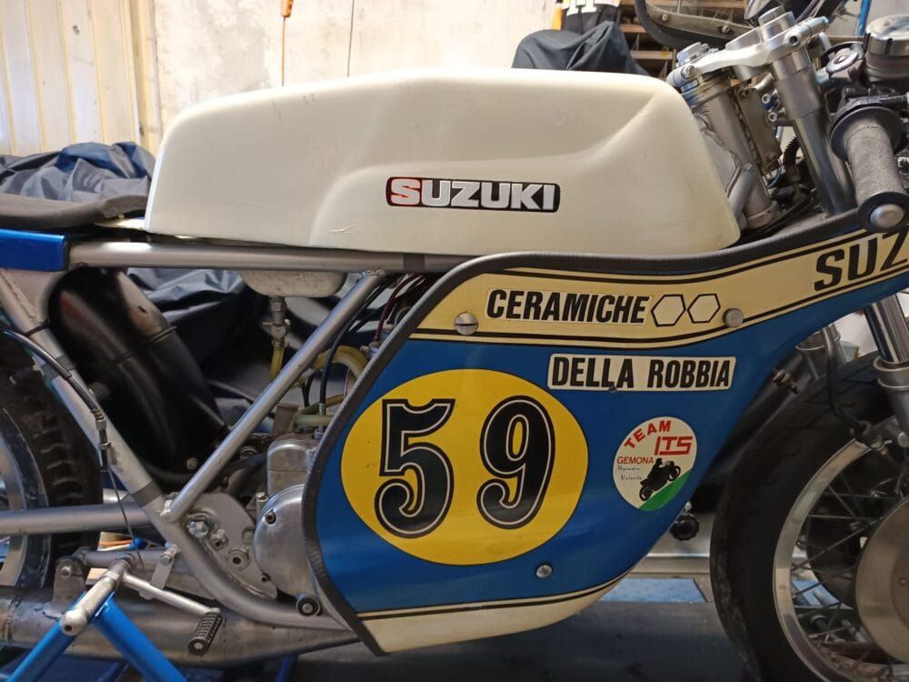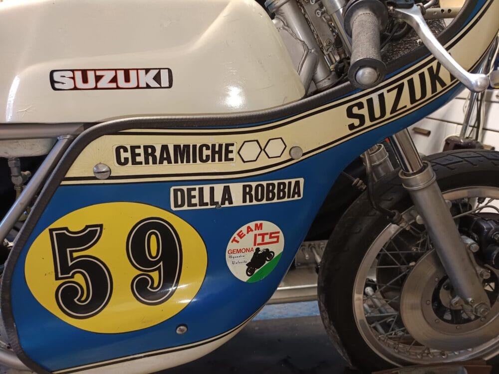 This particular example is a period-correct privateer race-bike built by SAIAD, the official Italian Suzuki importer for Italy of the era, who would commision unique, limited-production performance models and racing specials. Dating from the early 1970s and prepared in the style typical of Italian national and regional competition. Finished in authentic racing livery and carrying race number 59, the bike retains the name strip “Brollo A.” on the fairing, a rare and evocative detail consistent with European racing practice of the period, where riders’ surnames were commonly displayed on their machines.