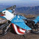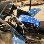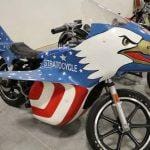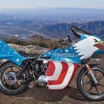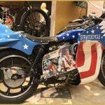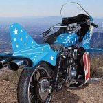 In the 70’s there was no one other legend like Evel Knievel, the king of danger and risk. 1977 Knievel made the move from the show ground stunts to Hollywood & the silver screen. His first acting role was the now cult classic Viva Knievel! The movie plays out like any good 1970s-era celluloid caper. There are goodies, baddies, stunts, kidnappings, beautiful women, car chases, and gunfights. Perhaps the most memorable scene is the one that introduces Evel’s Stratocycle, a customized Harley-Davidson Sportster XLCH with a unique fairing, fuel tank, seat, and rear cowl that is possibly the most American thing that has ever sat atop two wheels.
