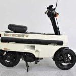 The Honda Motocompo if a unique folding scooter produced between 1981 and 1983. Originally designed and introduced as a “Boot Bike” to fit inside Honda’s range of hatch-backs (Civic, City, Today), the Motocompo was marketed in conjunction with the City’s television ads featuring British ska/2-tone band Madness. The Honda City’s luggage, or hatch area, was actually developed around the Compo.