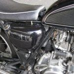 Has good compression, and starts but requires carby o/haul due to infrequent use. The tank has a small dent and a paint chip, the header pipe is rusty, and light oxidization on the hubs. Excellent as is or to use for retro build as it has many expensive custom parts already fitted.